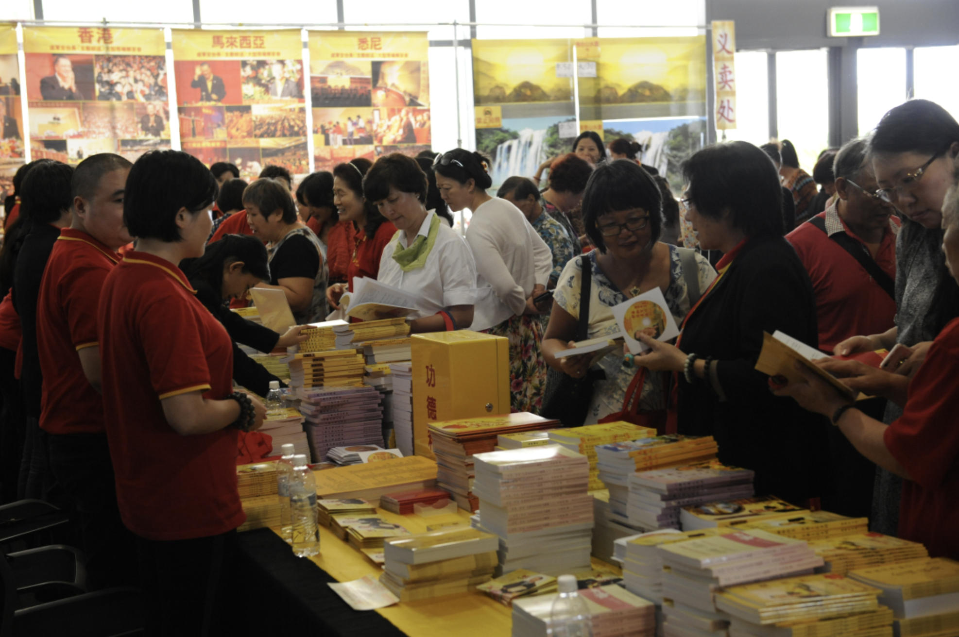 法会在布里斯本Brisbane Convention & Exhibition Centre的现代化展览厅中隆重举行,会场庄严典雅,人人洋溢着愉悦法喜,会场的义工一早就已到位,为各个环节做好了准备工作,意气风发的恭候欢迎来自布里斯本及世界各地的佛友们。对台长崇敬有加慕名而来的新佛友们,虔诚的聆听义工的讲解,并领取免费结缘品。整个会场座无虚席。