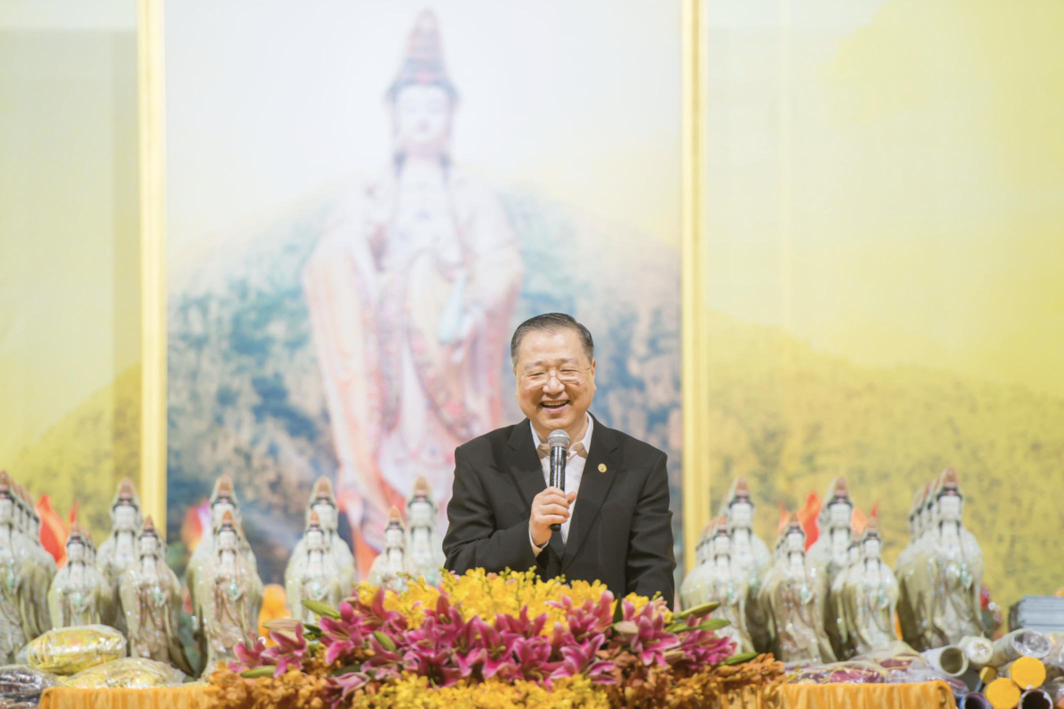 本次新加坡法会也是卢军宏台长继2012年开始新加坡弘法之旅之后,第五次莅临新加坡,新加坡有缘众生佛缘深厚,心灵法门更是在短短几年内就被新加坡信众及各界人士所接纳和弘扬。今天刚刚抵达新加坡,卢台长顾不上休息,就在当天晚上举行了宏大庄严的开光仪式,成百上千尊观世音菩萨宝像将带着观世音菩萨的佛光进入千家万户,共沐佛光;来自世界各地的近五千位佛友参加了开光仪式,并聆听了卢军宏台长的开示。