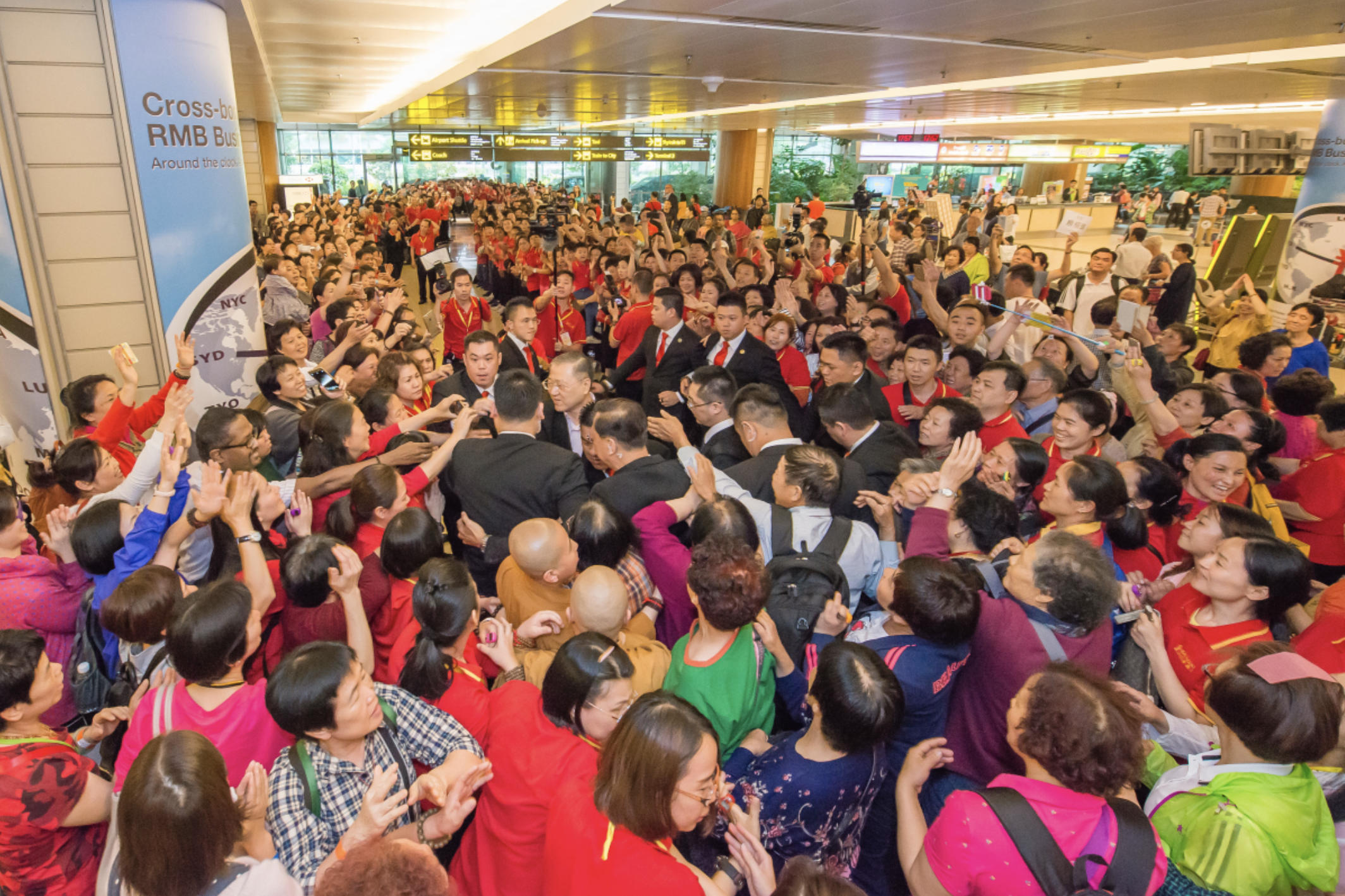 2016年4月21日,世界和平大使、一千万信众的心灵导师卢军宏台长,继二月印尼法会及三月布里斯本法会圆满成功举办之后,承载着世界佛友的期冀,秉承着弘法度众的大任,远涉重洋,再次风尘仆仆莅临新加坡弘法度众。21日傍晚,来自世界二十多个国家地区的佛友们,在新加坡机场举行了盛大的迎接仪式。早在三天之前,世界各地佛友就陆续到达新加坡,恭候着这一殊胜的时刻。感恩卢军宏台长带来观世音菩萨的慈悲之光,普照新加坡这片佛家宝地。新加坡大型法会在世界佛友的热切期待中正式拉开帷幕。